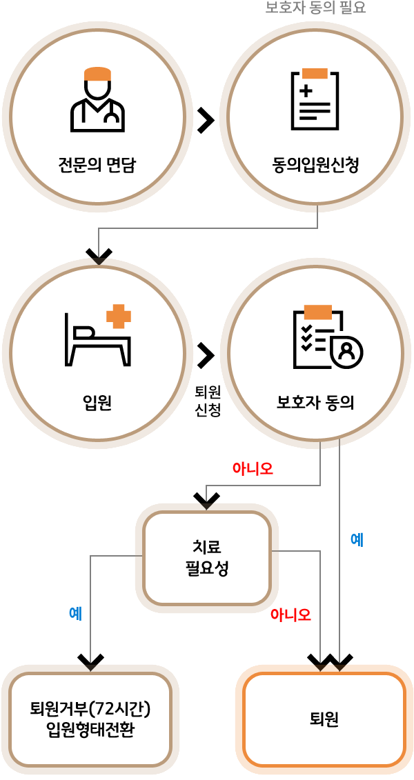 환자 본인이 정신건강의학과 전문의와 면담하여 입원의 필요성을 인지하고, 보호의무자의 동의를 받아 입원을 신청하는 자의적 입원 유형입니다.